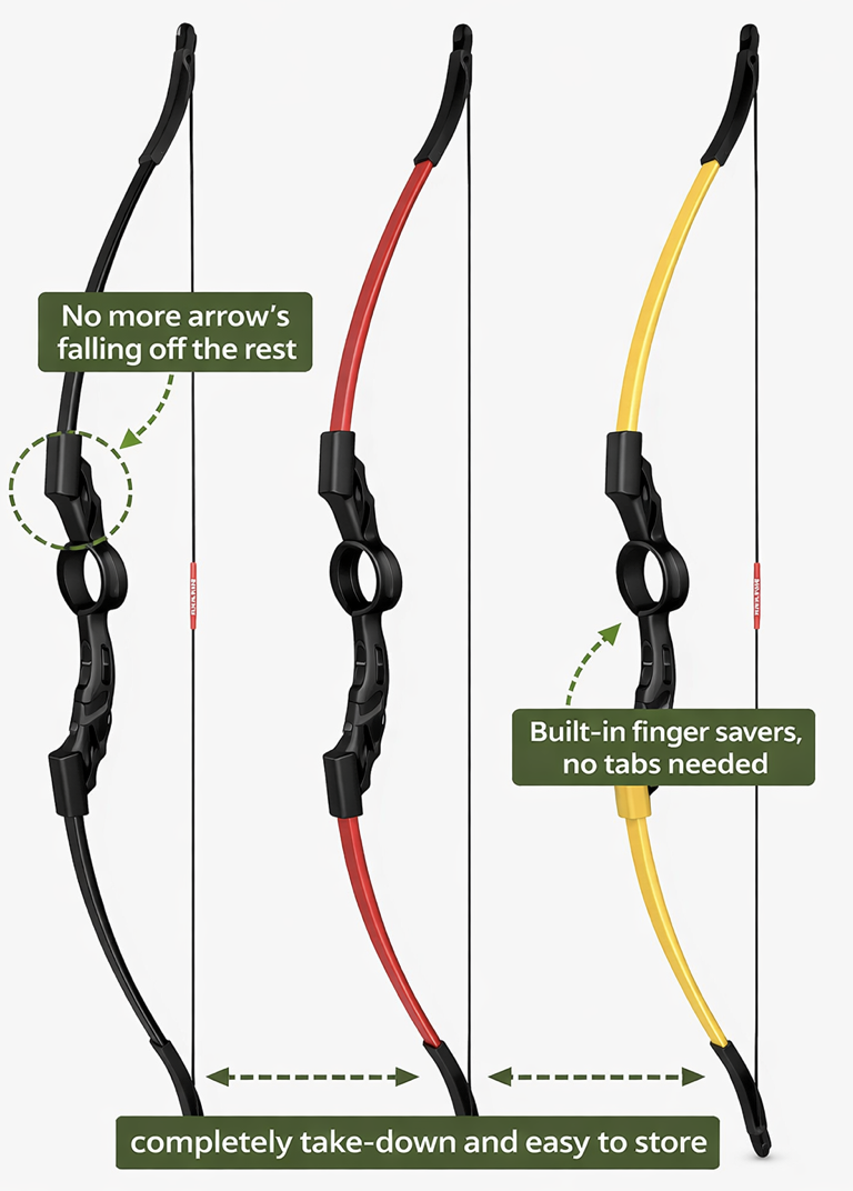 The ArrowLock is designed specifically for beginners, youth archers, and club programs, offering exceptional ease of use, portability, and reliability. Its take-down design and built-in arrow-holding system make it one of the most beginner-friendly bows available.